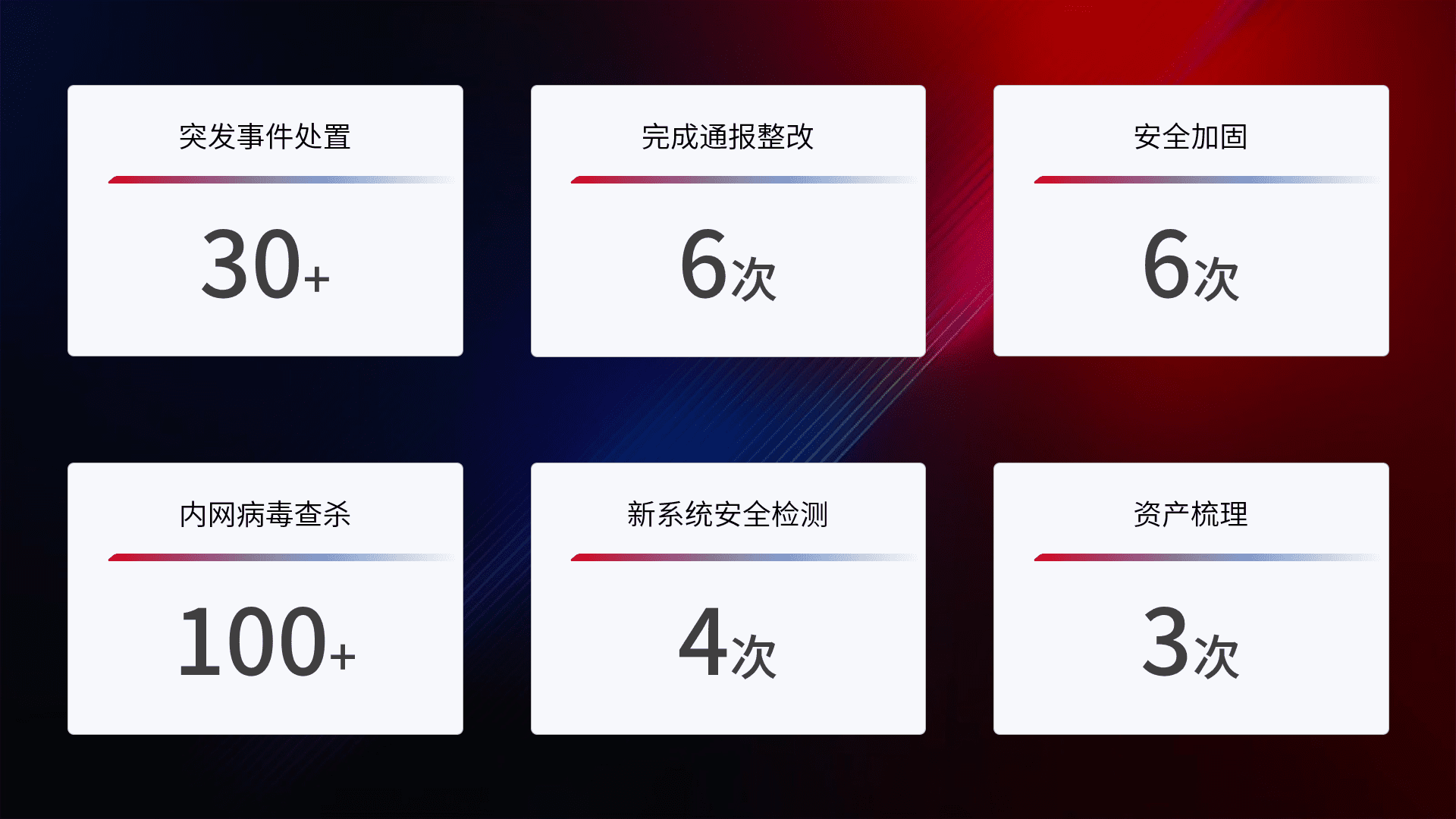 网络安全加固与风险管理:通过技术加固手段,,如加强区域隔离,,缩减攻击内网横向移动的范围;优化现有网络安全管理制度,,降低网络威胁暴露面,,,减少被黑客攻击的可能性。。